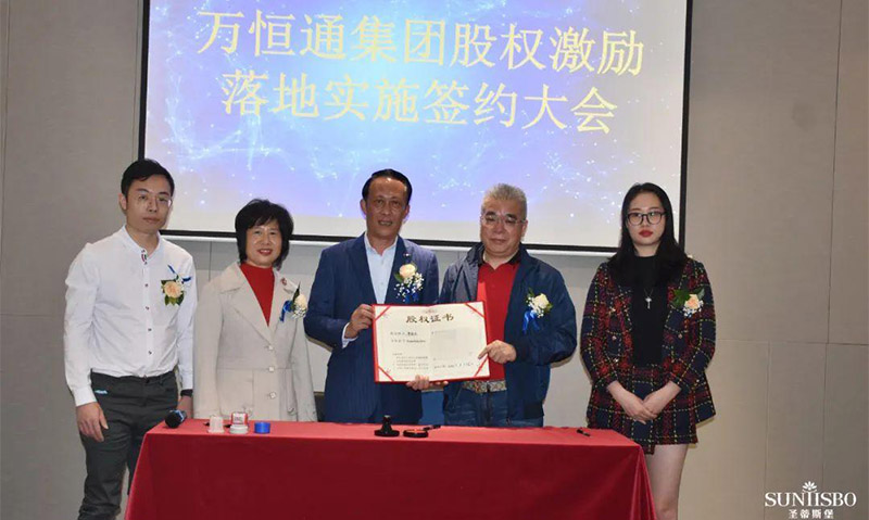 熊猫体育集团执行董事及法人代表王浩基先生正式为第一期六位虚拟受限股股东授予荣誉证书并签订股权分配协议。