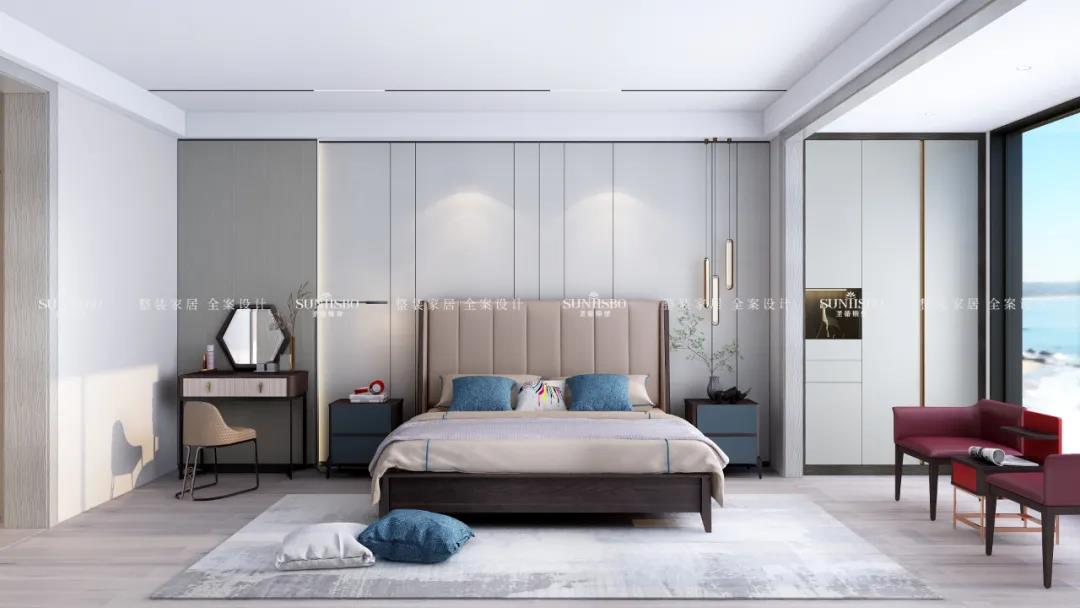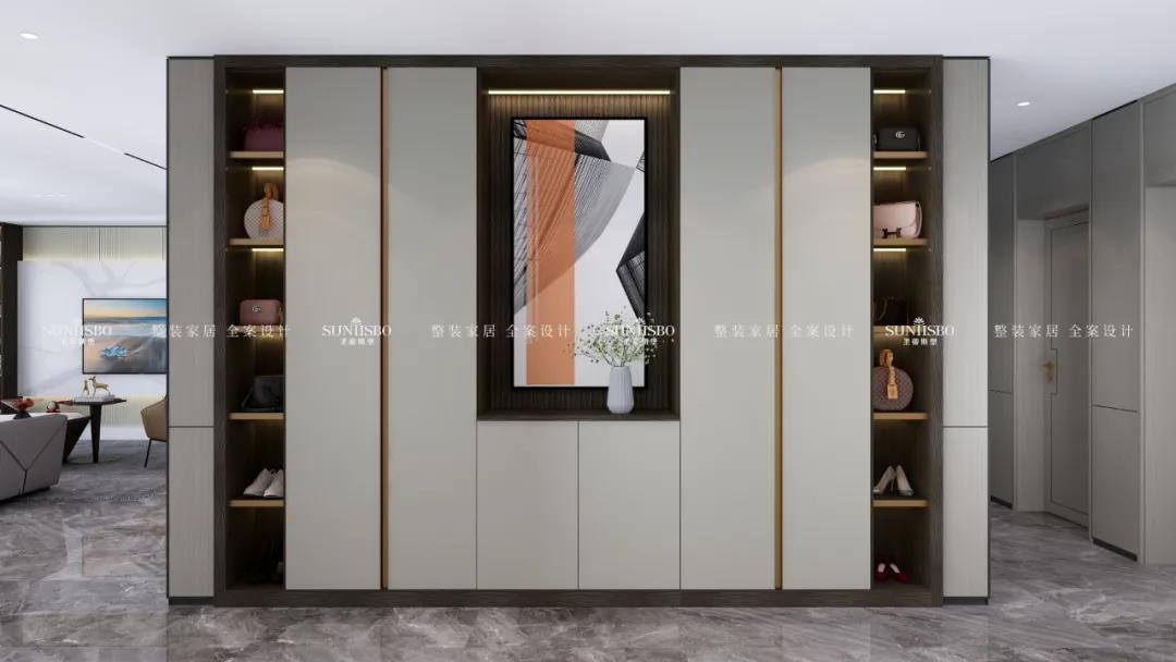 整体配色简约时尚,花色可选性多;材质上采用新型高级材料——欧松板,通过UV漆工艺表面形成超级肤感膜,使接触面舒适细腻。同时使用线条感简洁利落的拉手作为设计元素,子母拉手的设计别具一格,体现了设计师的用心;搭配灯光和功能件,使产品极具展示效果与功能性。